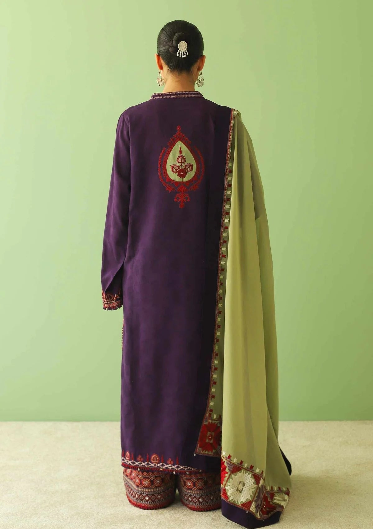 Embroidered Dhanak Trouser: The unstitched trouser, crafted from premium Dhank Marina fabric, is plain enhanced with delicate embroidery, offering a refined and cohesive appearance. This thoughtfully designed piece ensures a polished look that pairs seamlessly with the shirt and shawl.