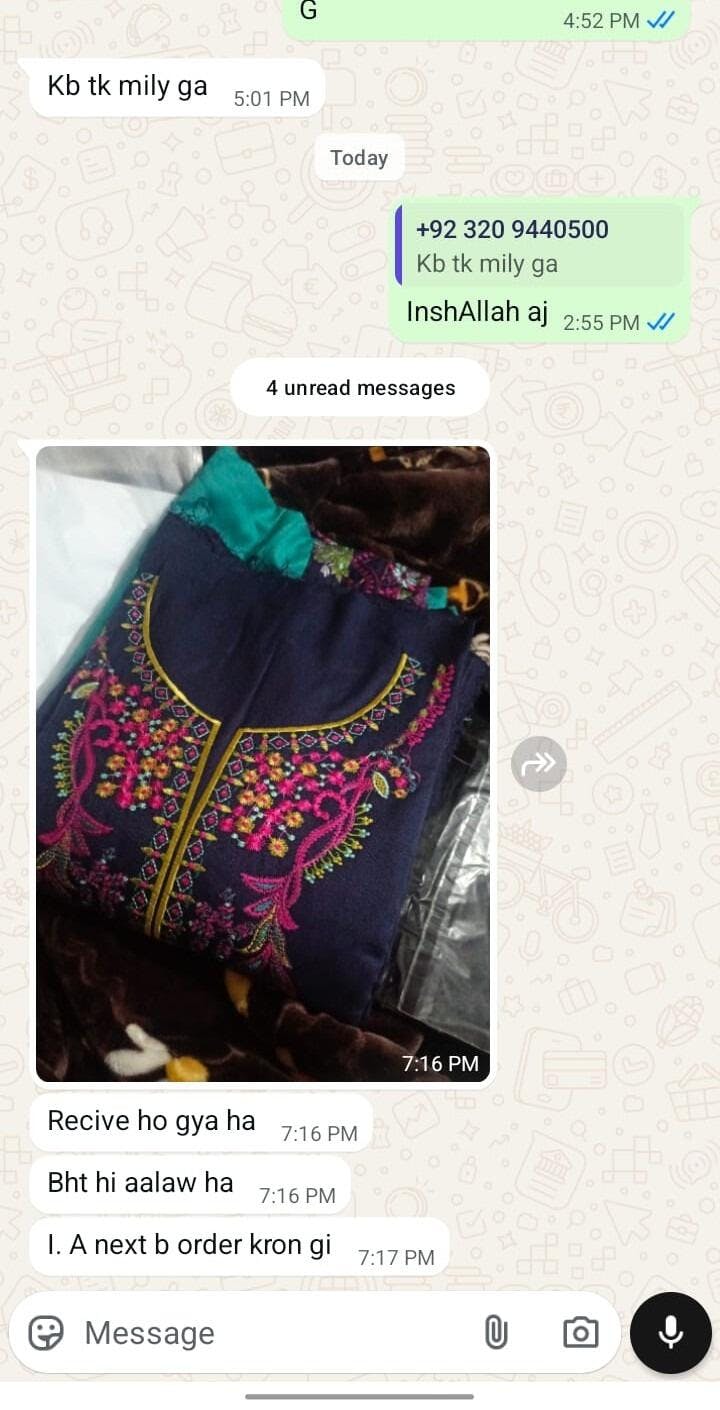 we recieved the dress and amazed to c that its of very high quality and almost next to original. stuff embroidery all r perfect. best A +++ quality